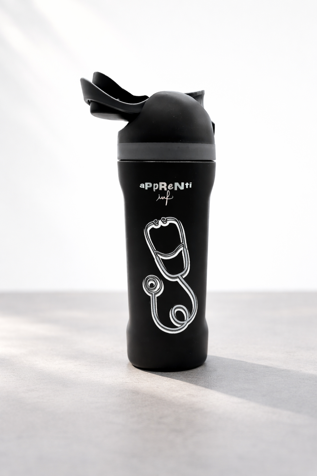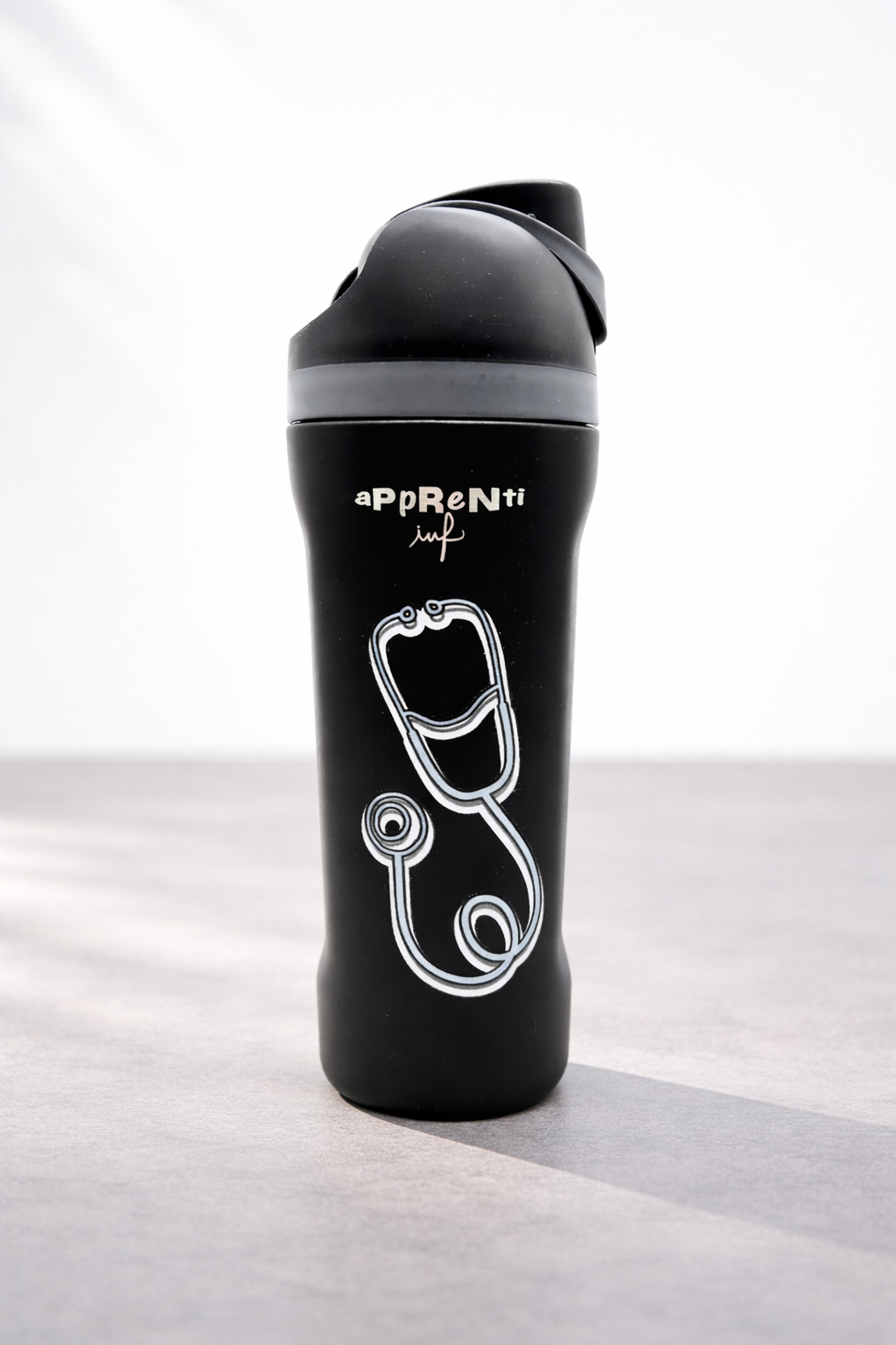 Bouteille isotherme 24 oz en acier inoxydable, conçue pour le quotidien des professionnels de la santé. Elle garde les boissons froides jusqu’à 24h et dispose d’un bouchon hermétique anti-fuite pour un transport sécurisé.